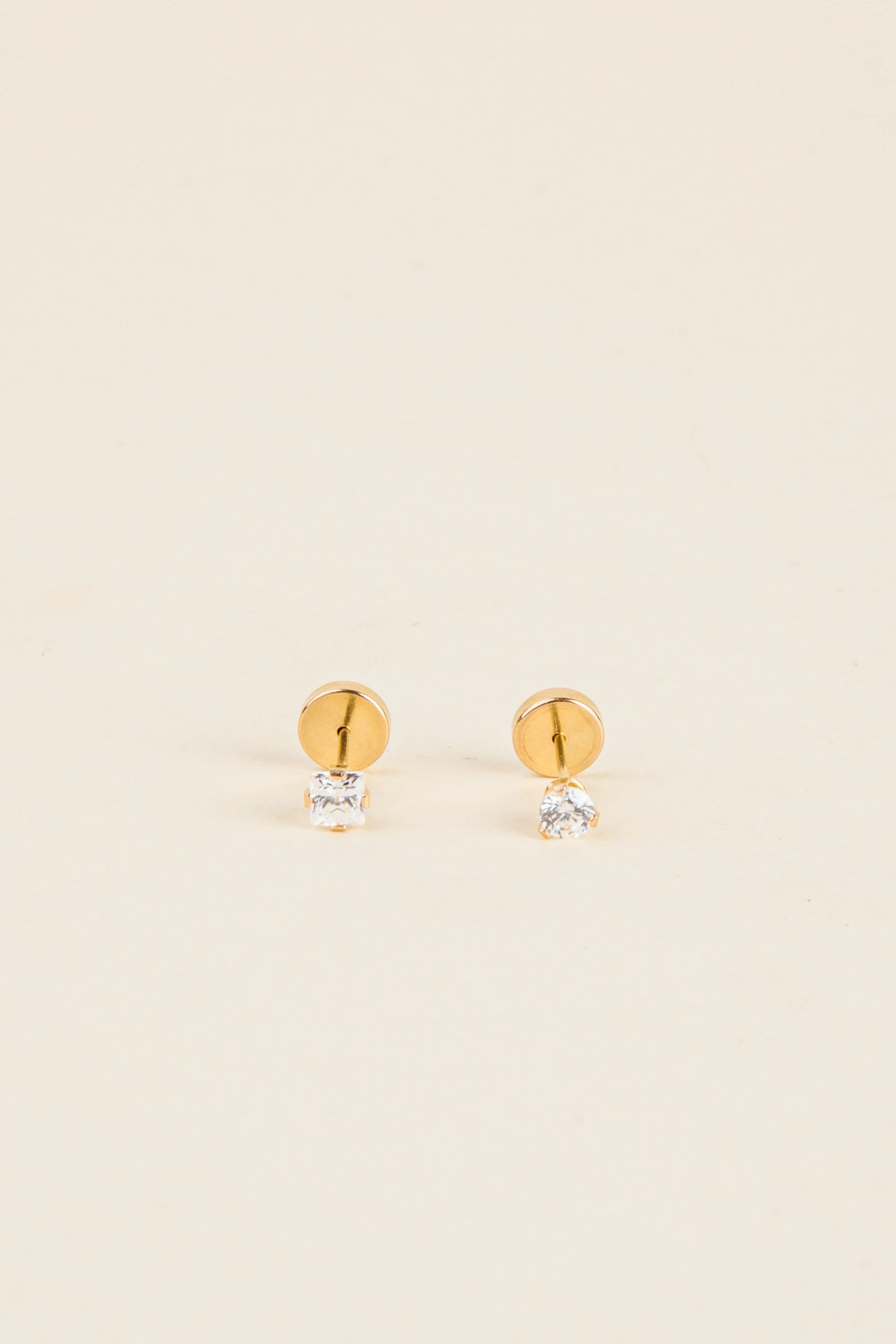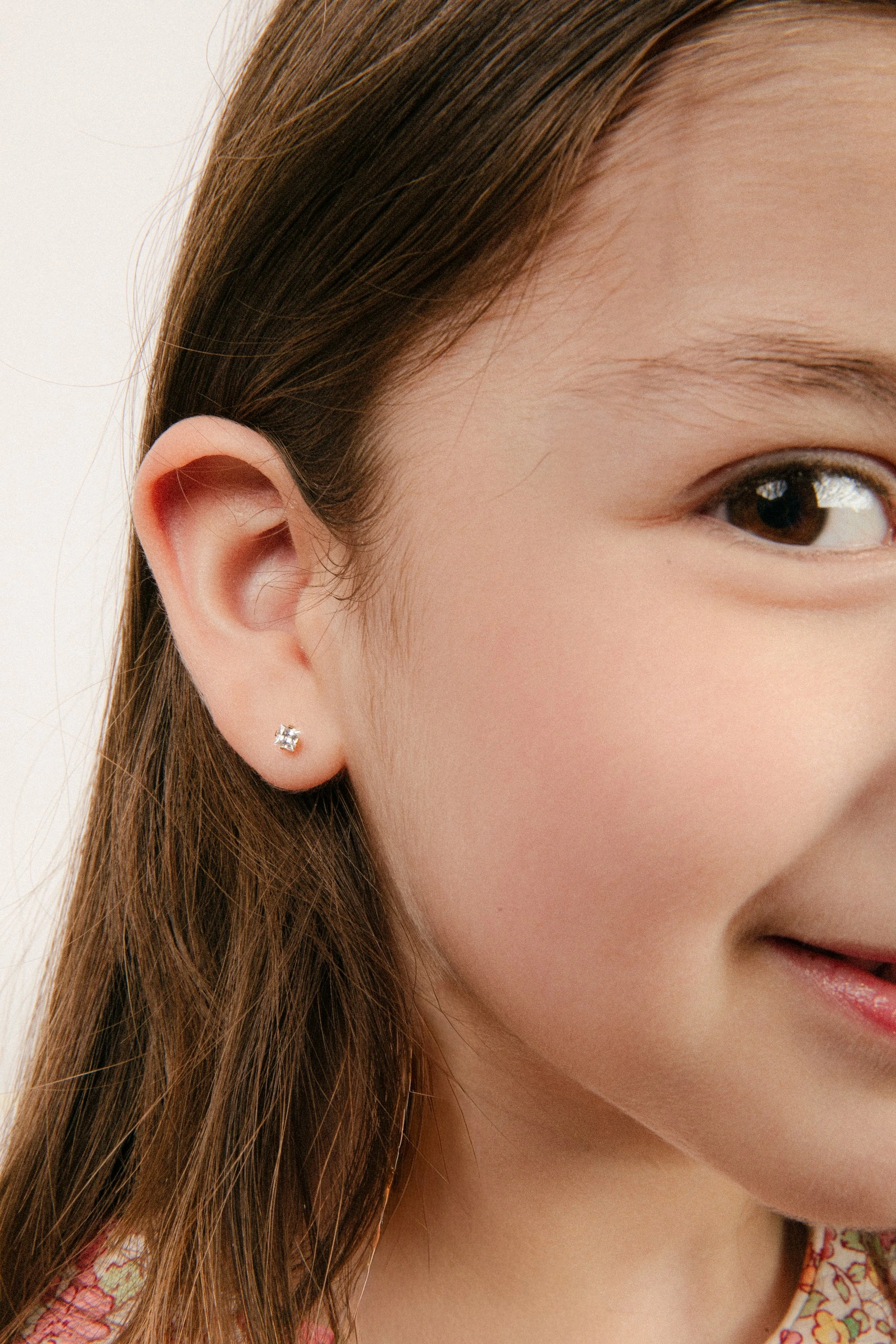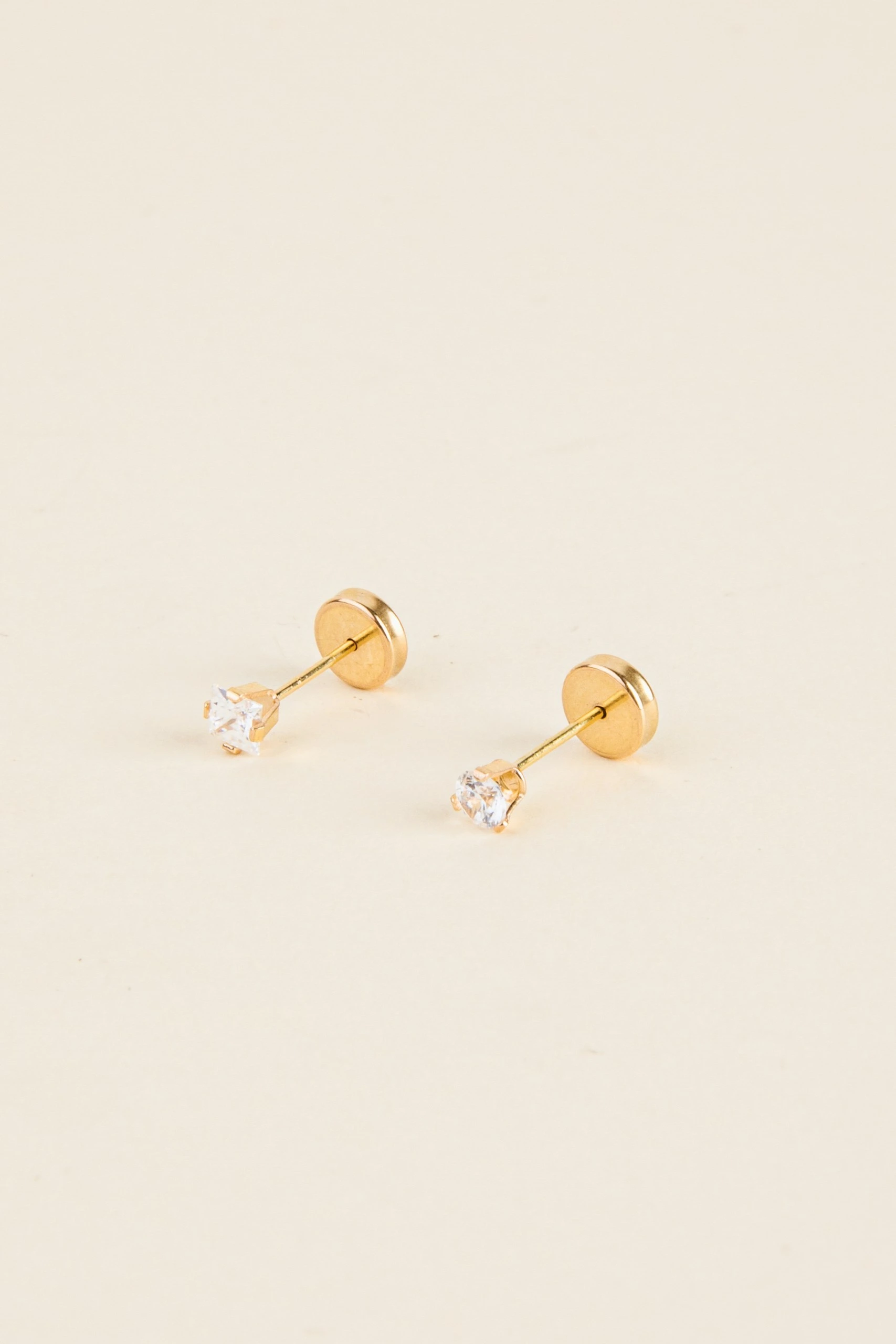 Aritos de bebe circón cuadrado  – delicados y seguros